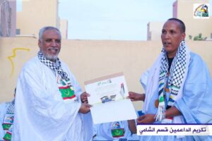 نظم الرباط الوطني لنصرة الشعب الفلسطيني قسم الشامي نشاطا تكريميا ،تثمينا لجهود من دعموا القضية الفلسطينية طيلة عامي الطوفان، بحضور رئيس الرباط الوطني الأستاذ الشيخاني ولد بيب.
