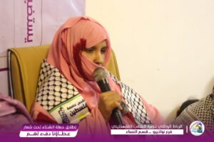 كما تحدثت الشيخات المحاضرات عن مكانة القدس عند المسلمين ودور المرأة الموريتانية في نصرة القضية الفلسطينية وحرضن الحضور على الجهاد بالمال ورغبن في المشاركة الفاعلة في الحملة المباركة