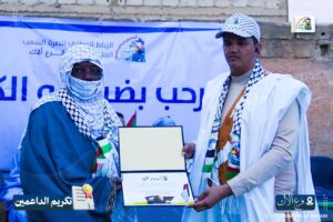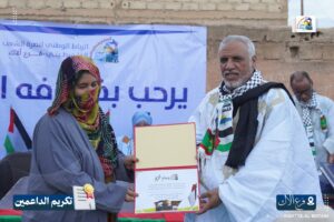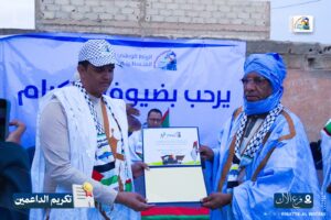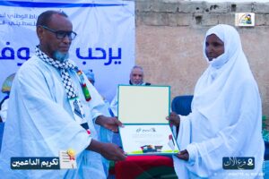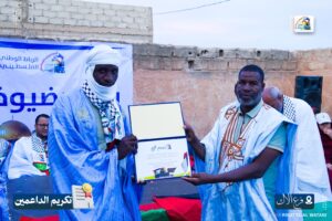 وبهذه المناسبة، نظّم الفرع نشاطًا تكريميًا تثمينًا لجهود الداعمين للقضية الفلسطينية طيلة عامي الطوفان، وذلك بحضور رئيس الرباط الوطني الأستاذ الشيخاني ولد بيب ومسؤول الفروع الدكتور ازدبيه الإمام.