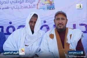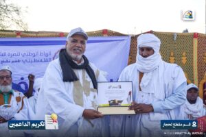 وبهذه المناسبة، نظّم الفرع نشاطًا تكريميًا تثمينًا لجهود الداعمين للقضية الفلسطينية طيلة عامي الطوفان، وذلك بحضور رئيس الرباط الوطني الأستاذ الشيخاني ولد بيب ومسؤول الفروع الدكتور ازدبيه الإمام.