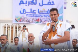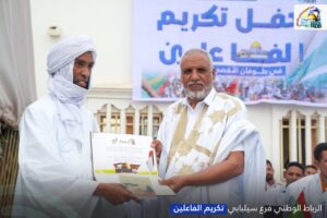 وبهذه المناسبة، نظّم الفرع نشاطًا تكريميًا تثمينًا لجهود الداعمين للقضية الفلسطينية طيلة عامي الطوفان، وذلك بحضور رئيس الرباط الوطني الأستاذ الشيخاني ولد بيب ومسؤول الفروع محمد ول صالح