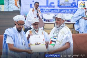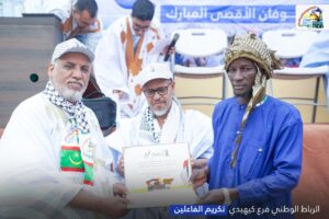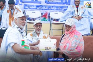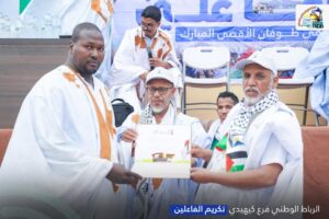 وبهذه المناسبة، نظّم الفرع نشاطًا تكريميًا تثمينًا لجهود الداعمين للقضية الفلسطينية طيلة عامي الطوفان، وذلك بحضور رئيس الرباط الوطني الأستاذ الشيخاني ولد بيب ومسؤول الفروع.