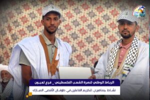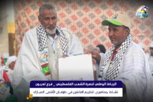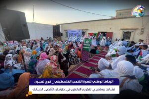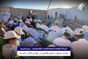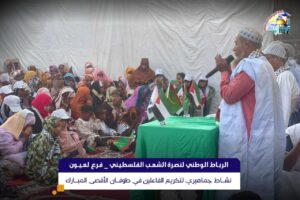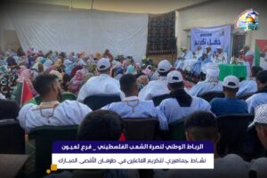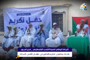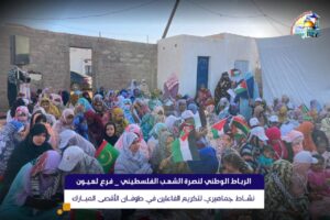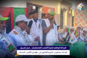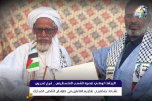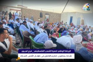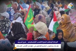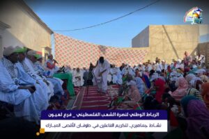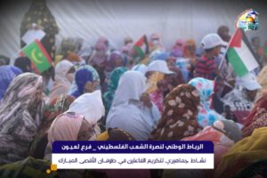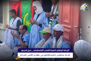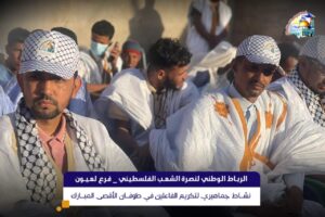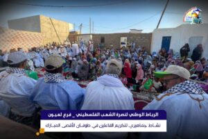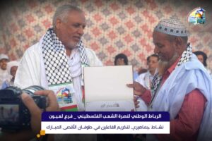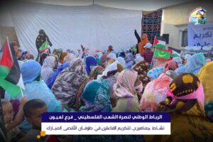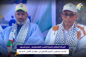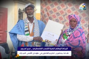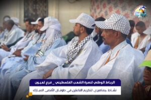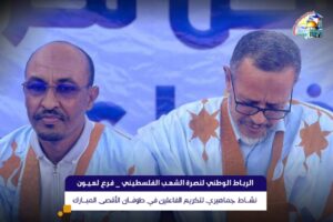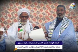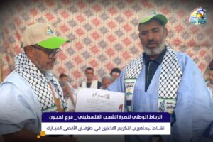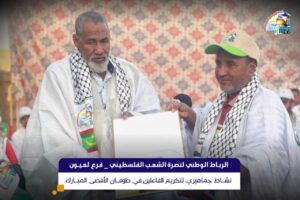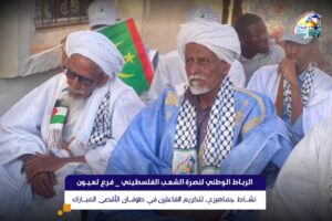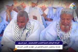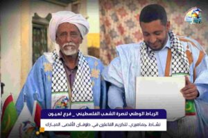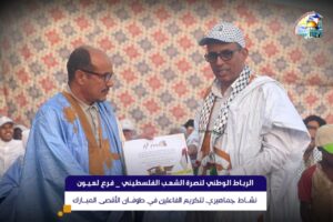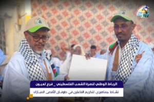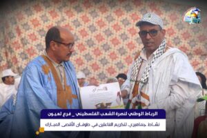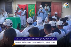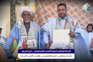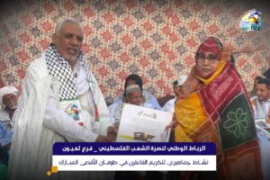 وبهذه المناسبة، نظّم الفرع نشاطًا تكريميًا تثمينًا لجهود الداعمين للقضية الفلسطينية طيلة عامي الطوفان، وذلك بحضور رئيس الرباط الوطني الأستاذ الشيخاني ولد بيب ومسؤول الفروع.