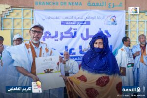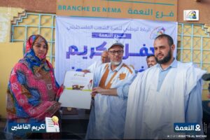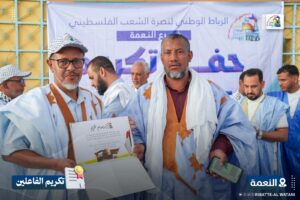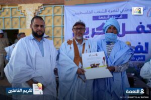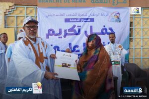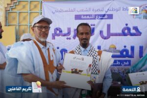 وبهذه المناسبة، نظّم الفرع نشاطًا تكريميًا تثمينًا لجهود الداعمين للقضية الفلسطينية طيلة عامي الطوفان، وذلك بحضور رئيس الرباط الوطني الأستاذ الشيخاني ولد بيب ومسؤول الفروع.